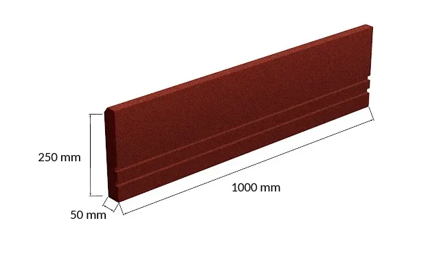 Elastyczny krawężnik 1000 x 250 x 50 mm - czerwony